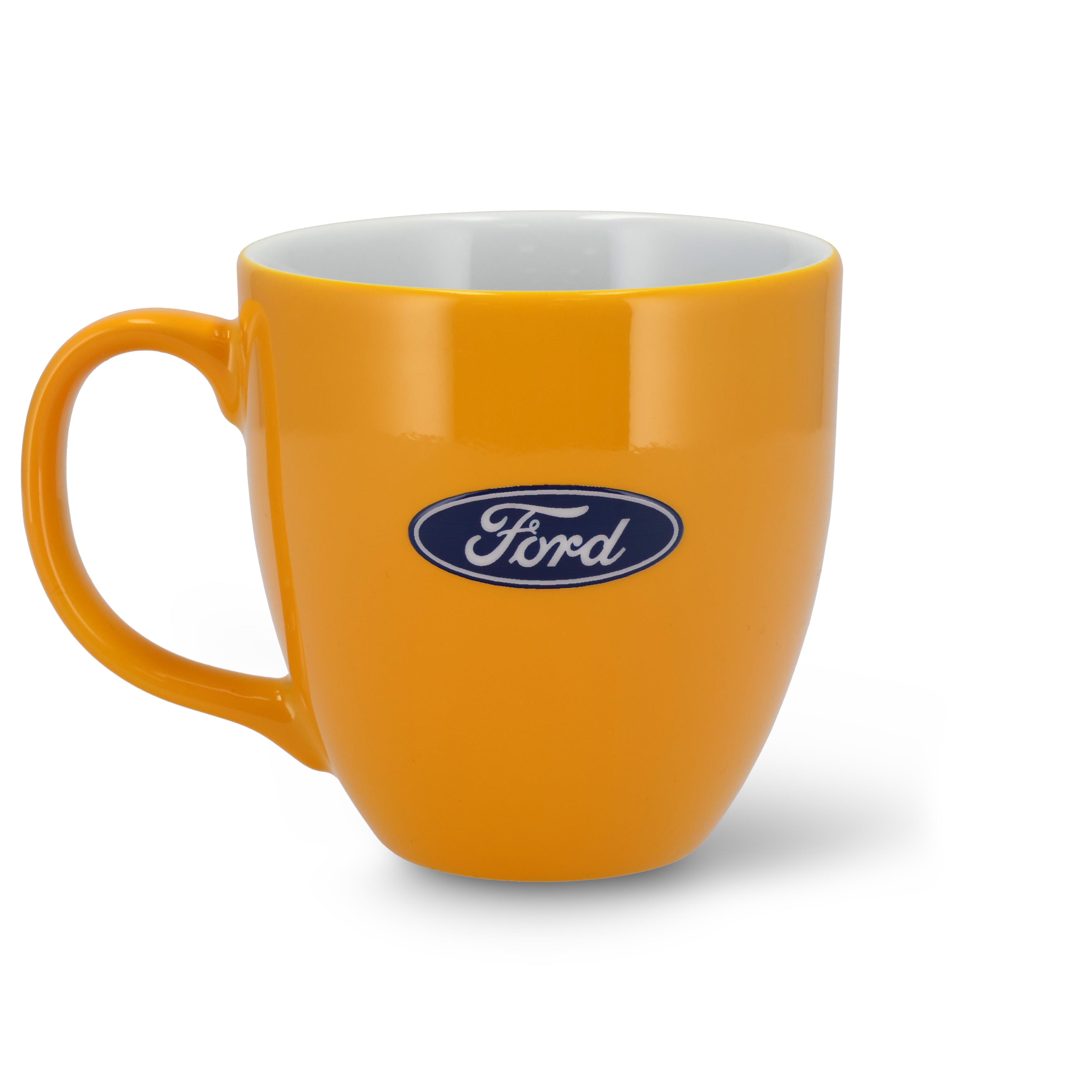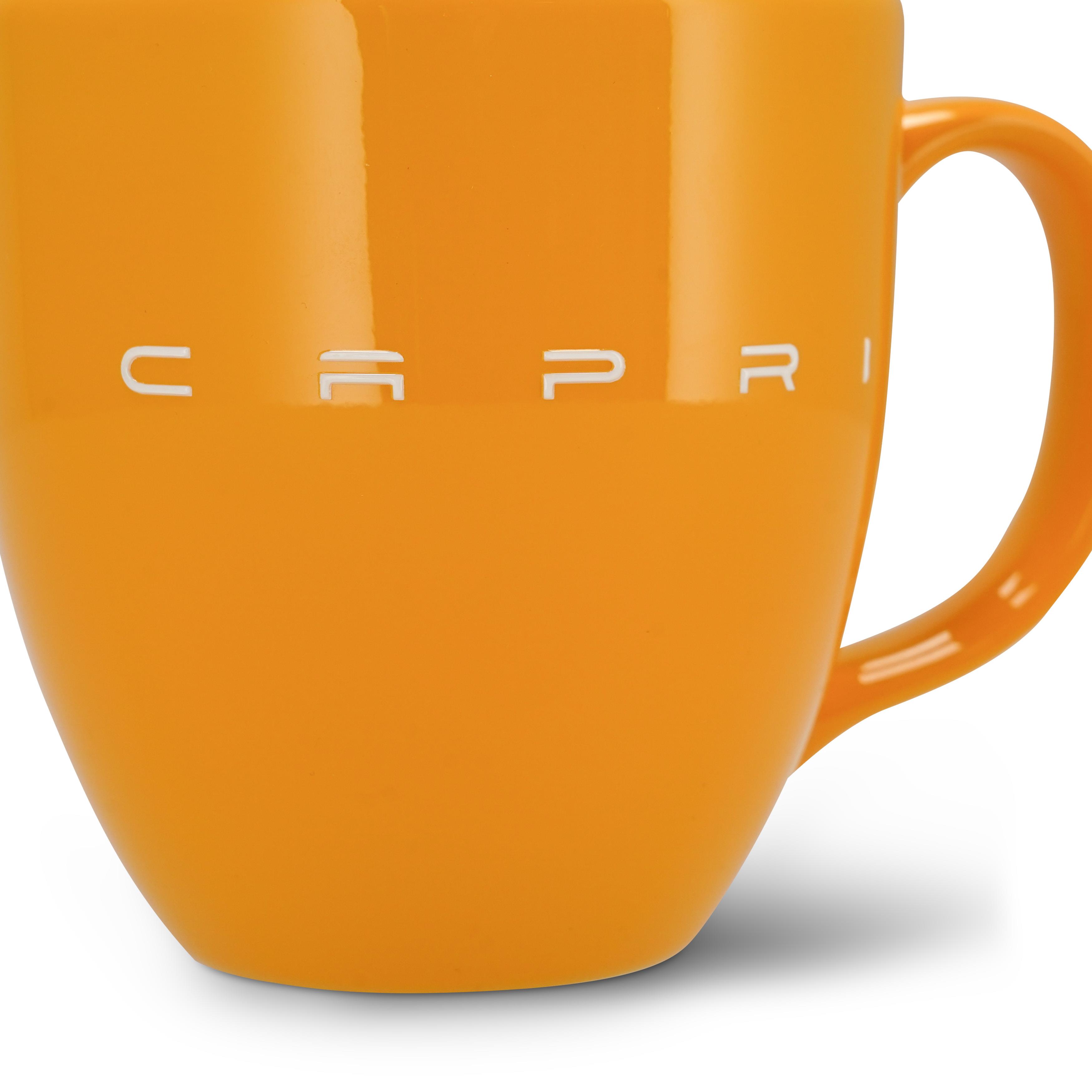 Experimente o estilo intemporal da caneca Ford Classic Capri. A porcelana de alta qualidade na clássica cor amarela Capri traz boa disposição ao seu dia a dia. Com o logótipo oval original da Ford e a inscrição característica Capri, é uma peça indispensável para todos os fãs da Ford – perfeita para o seu café da manhã ou para a pausa na oficina.