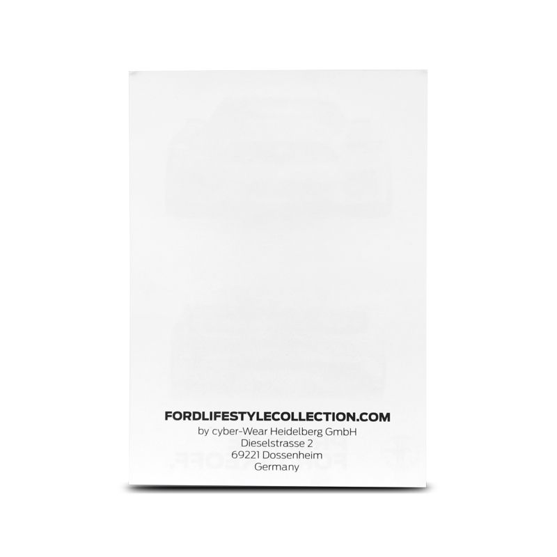 Agora já pode afixar a mensagem da marca: postal colante com um motivo de design Ford e medidas de 10,5 x 14,8 cm.