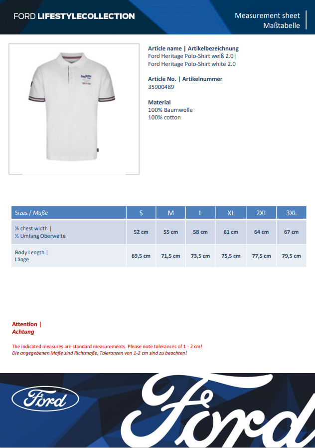 Show style and passion with the Ford Heritage Polo Shirt White 2.0. This high-quality polo impresses with its clean look, elegant Heritage logo on the chest, and additional branding on the sleeve. Perfect for everyday wear, the office, or meet-ups – subtle, sporty, and unmistakably Ford.