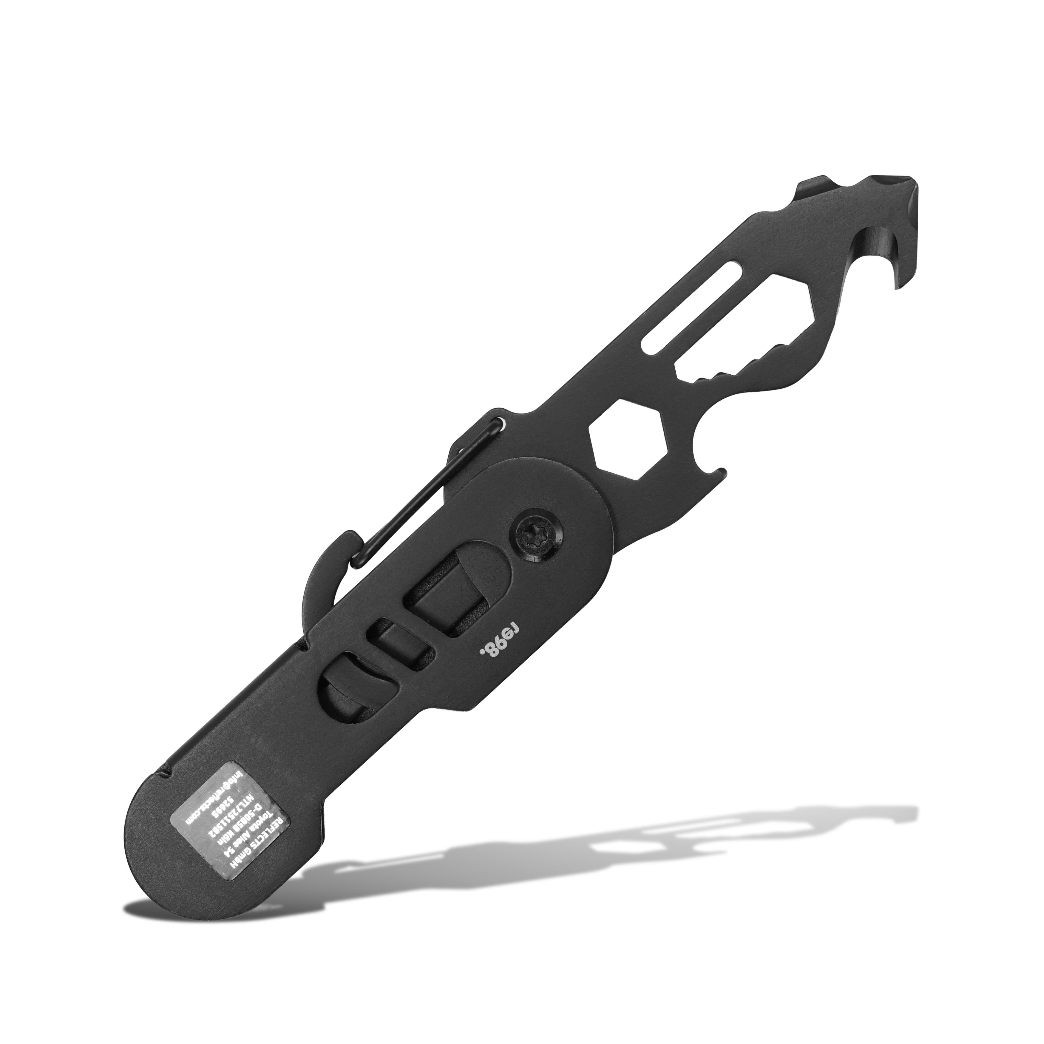 Thanks to the clip-on carabiner, you’ll always have it within reach—whether on your keychain, belt, or bag. The black anodized aluminum handle ensures a comfortable grip and a modern look.