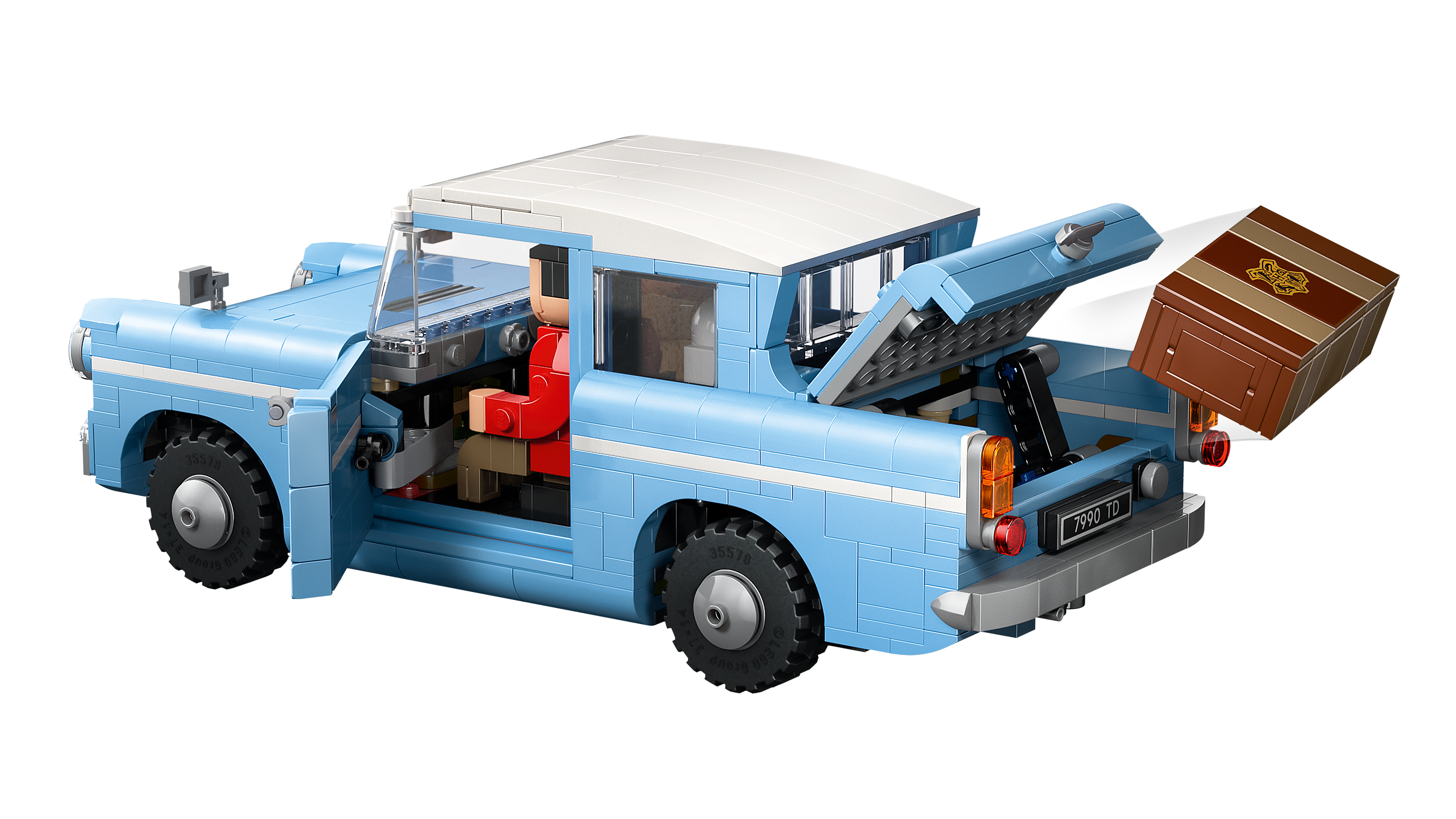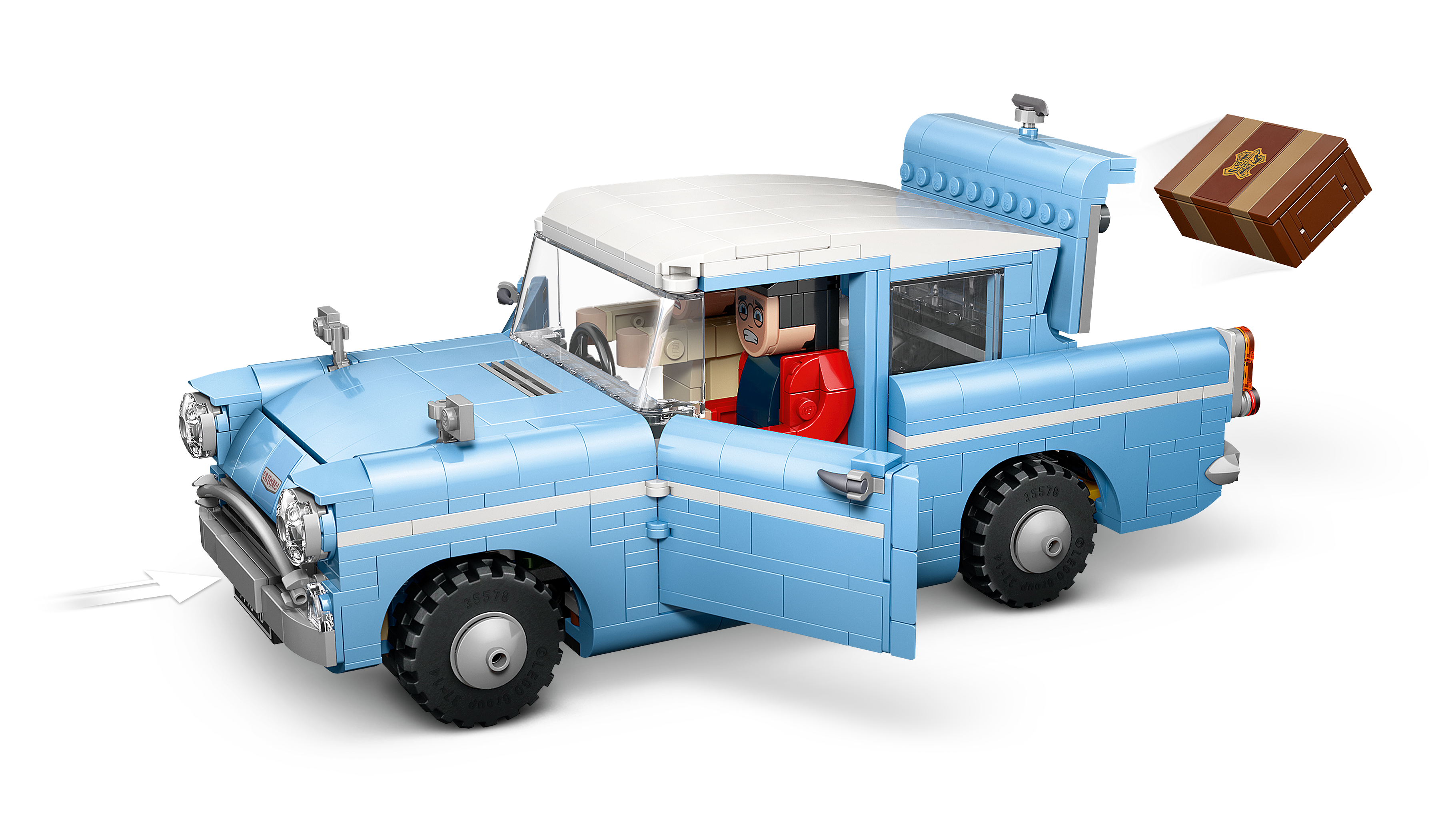 The flying Ford Anglia brings magical adventures right to your home. With the detailed LEGO Harry Potter model of the enchanted Ford Anglia, boys, girls and all fans aged 14 and up can recreate scenes from Harry Potter and the Chamber of Secrets. The car offers magical features: press the bumper to open the doors and boot or eject the suitcase.