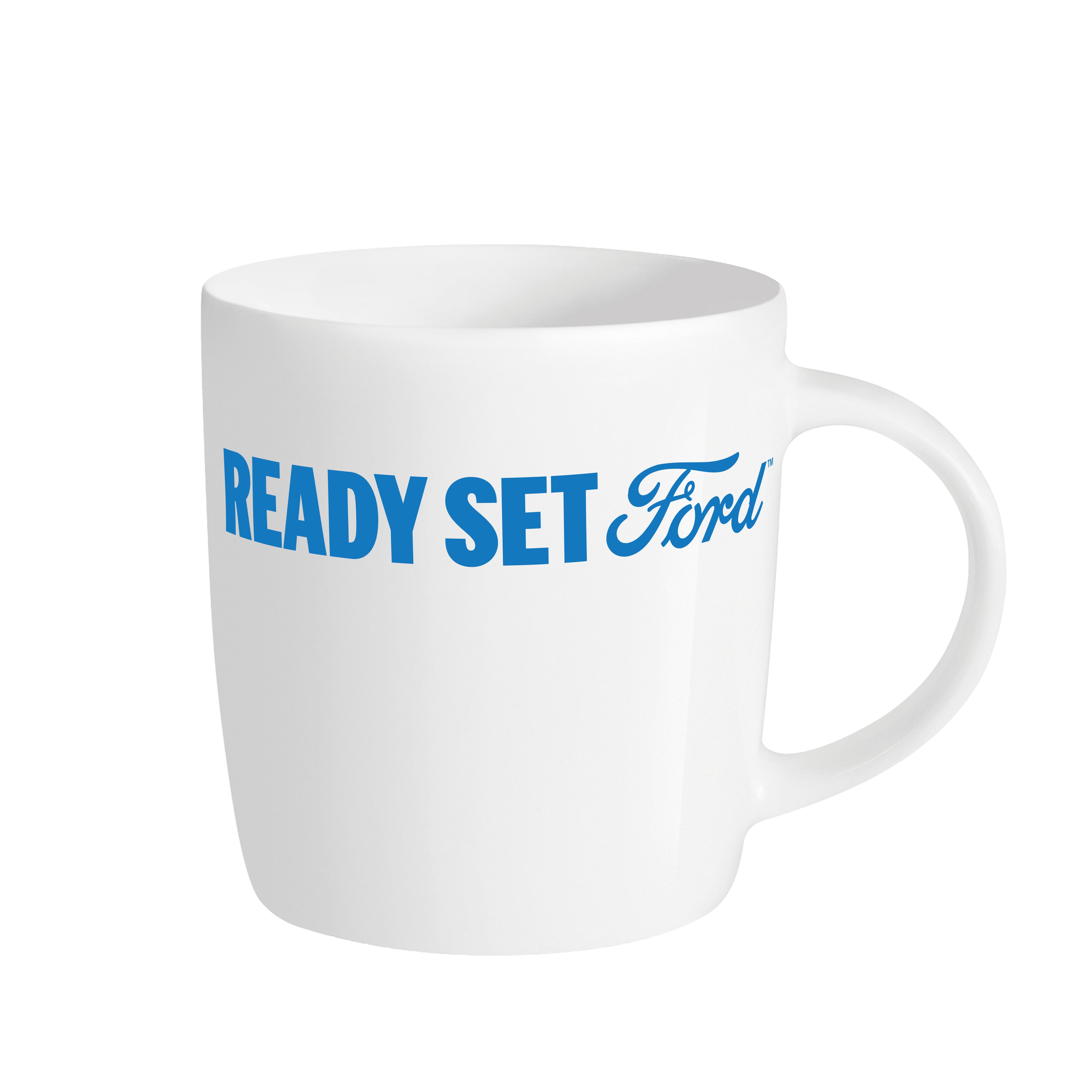 The Ford Ready Set Ford Mug in white combines elegant design with practical everyday usability.