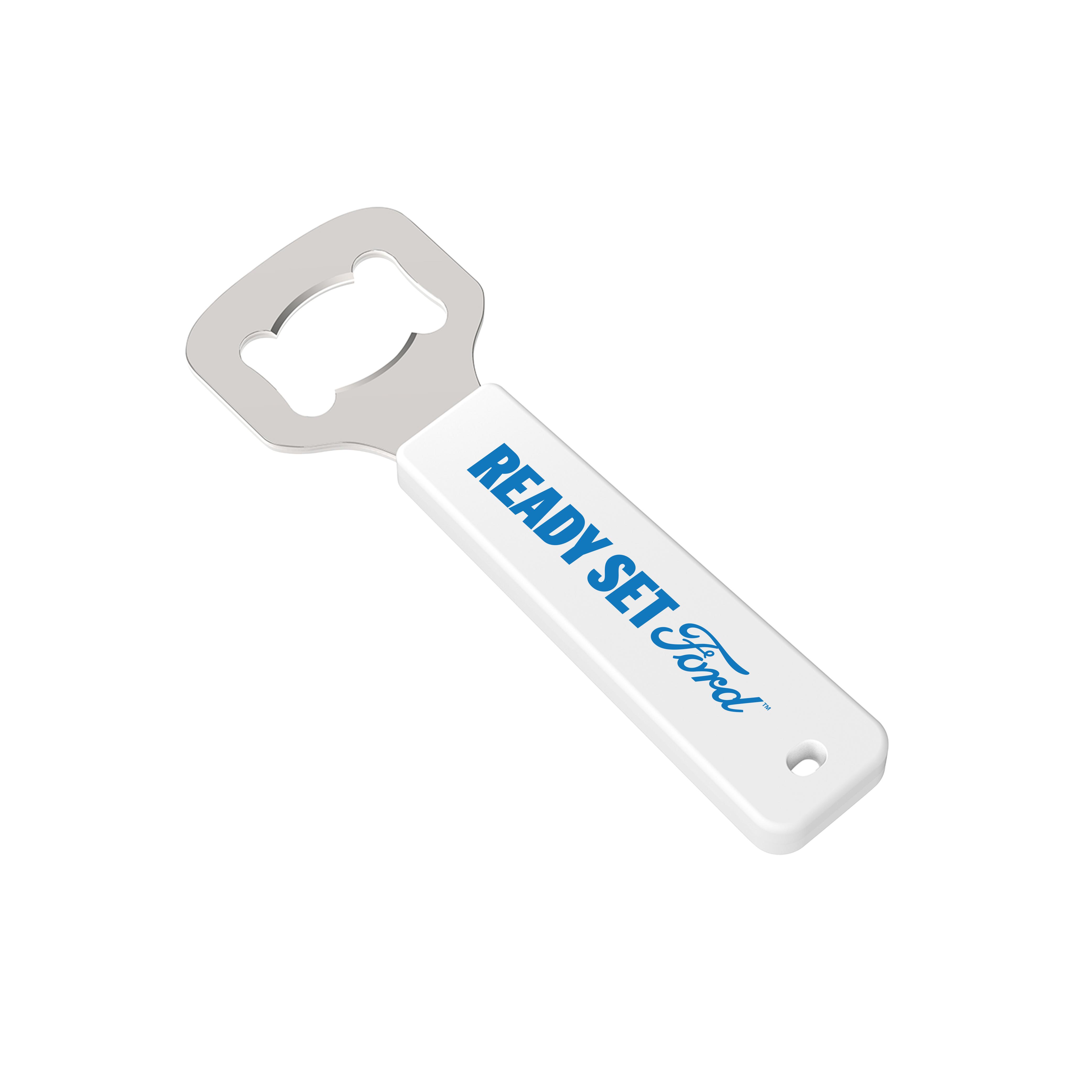 The Ford Ready Set Ford bottle opener in white is both practical and stylish.