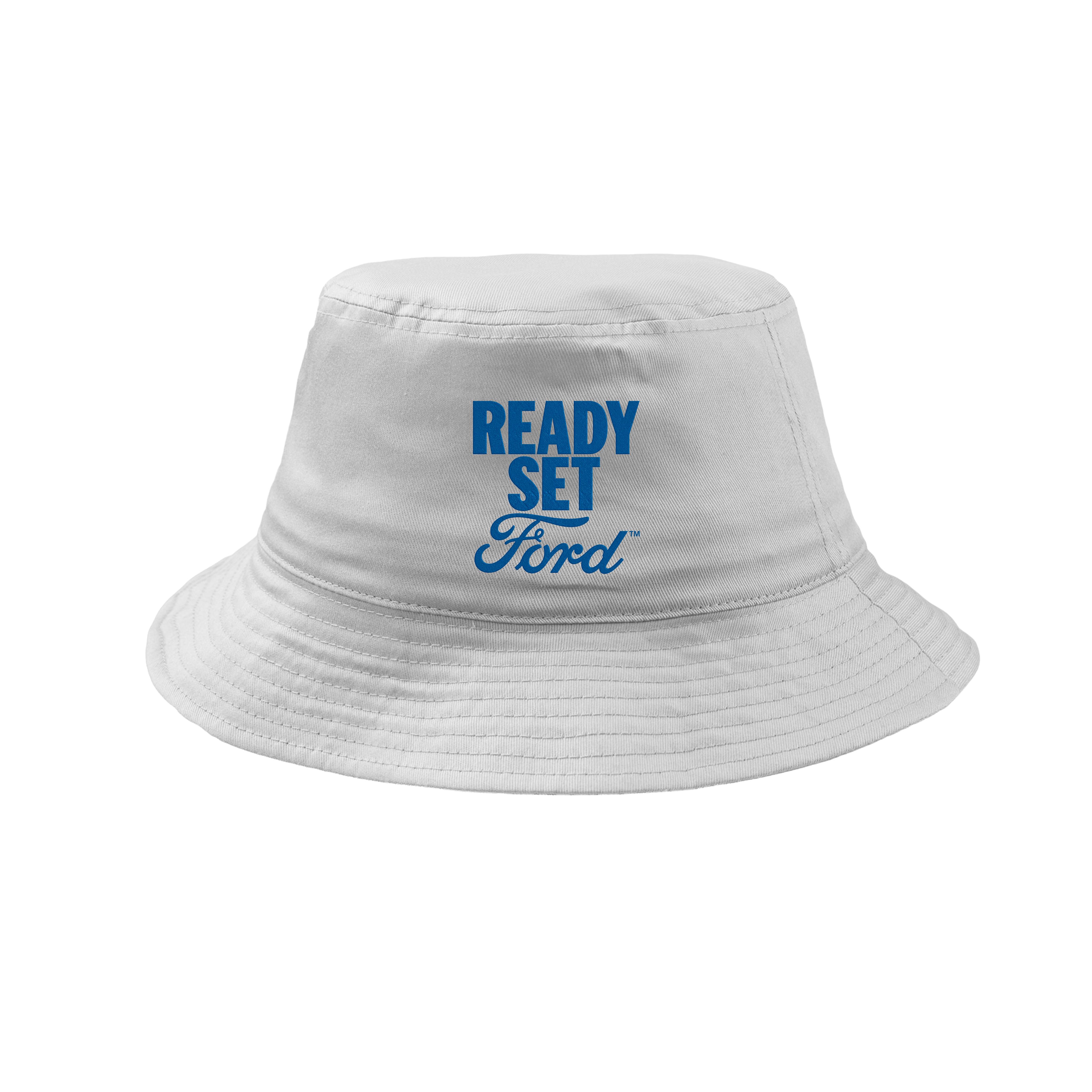 The Ford Ready Set Ford Bucket Hat in white adds a casual touch to your everyday look.