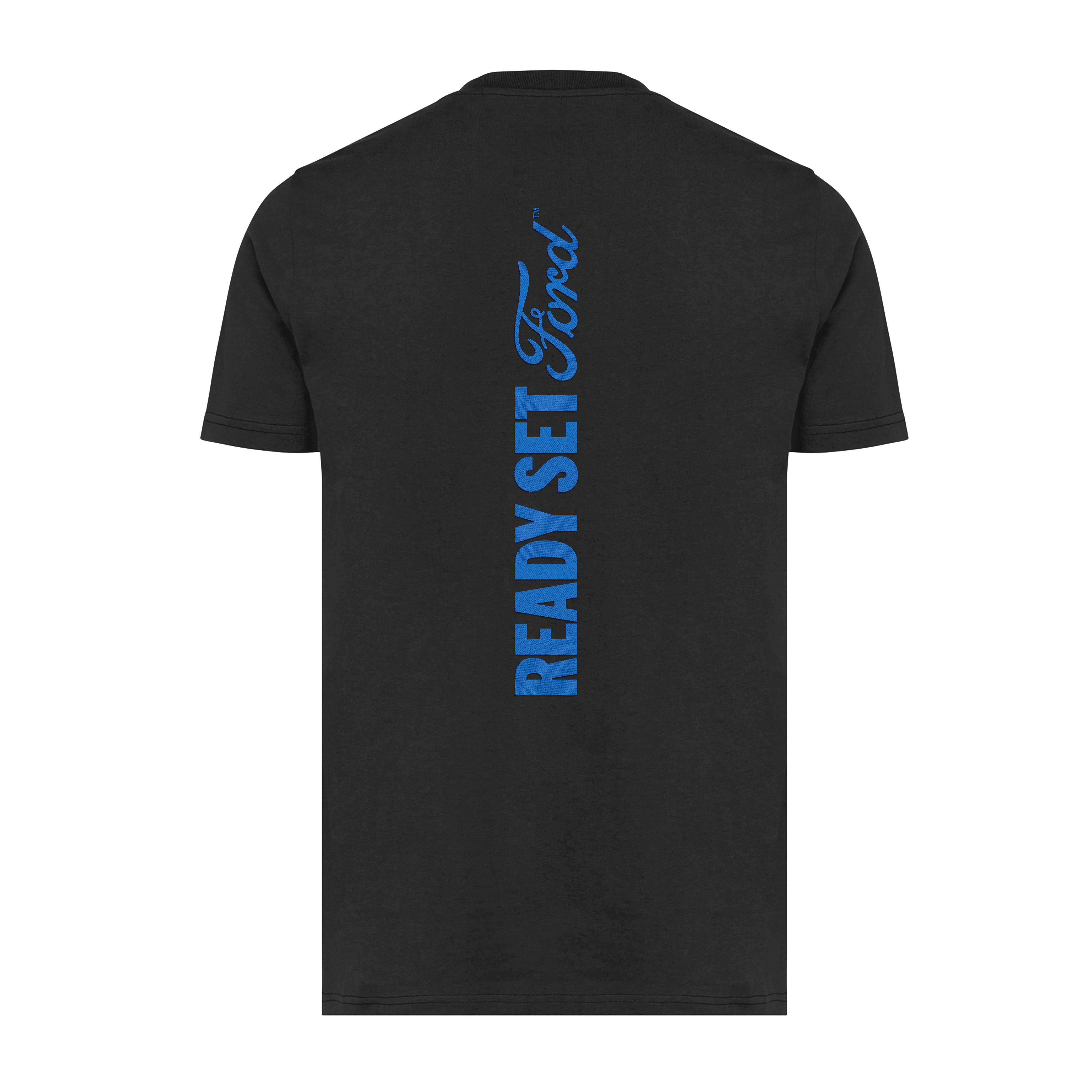 The front features a subtle Ford logo, while the vertical “Ready Set Ford” print on the back creates an eye-catching look. The classic fit and comfortable fabric make it the perfect choice for everyday wear and leisure.