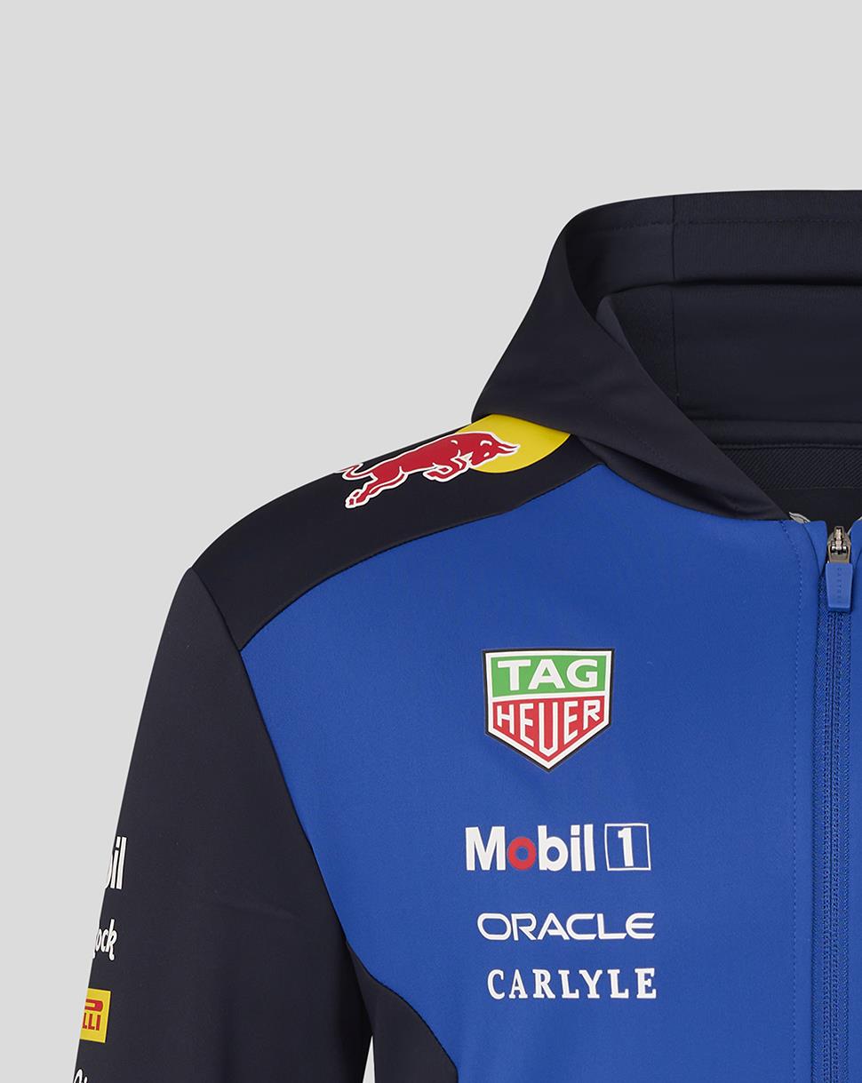 Stay comfortable and look sharp on race day with the Ford Racing Red Bull Replica Zip-Hoodie. Crafted with durable fabric and set-in long sleeves, it offers a structured yet comfortable fit for all day wear in support of Ford and Oracle Red Bull Racing. The full zip design allows for adjustable coverage, while the two side pockets provide practical storage.