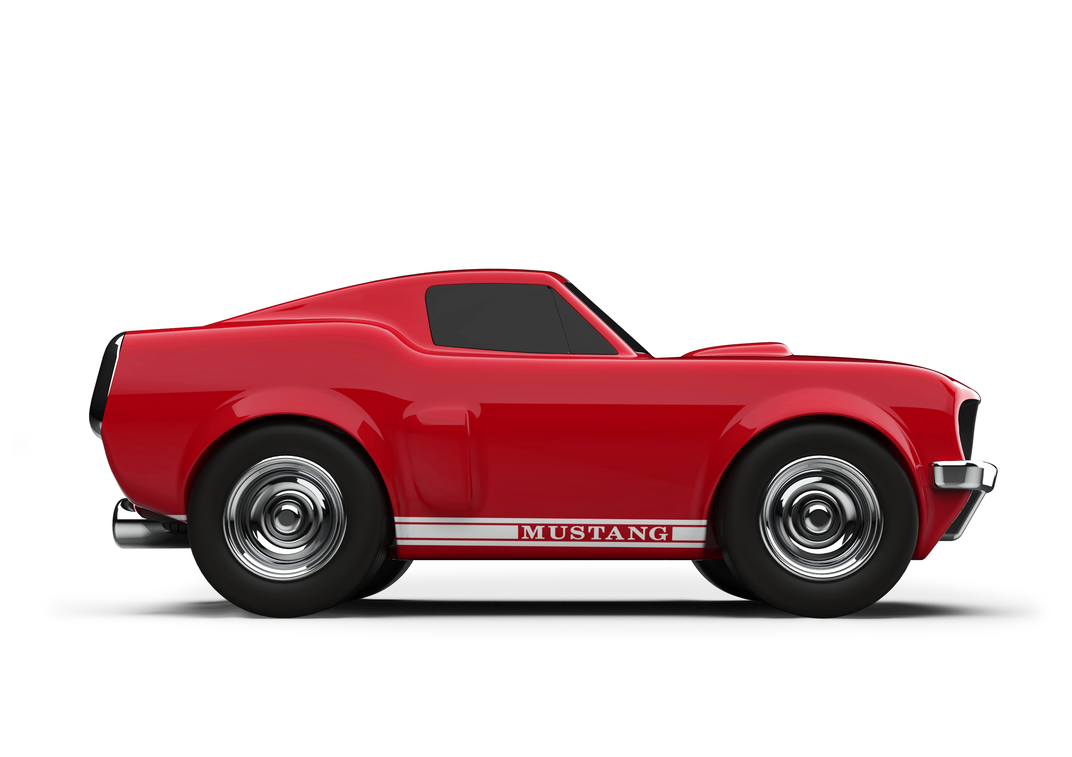 The hand-applied paint and chrome-plated wheels with rubber tyres ensure a realistic driving sensation – quiet, safe and easy to drive. The striking design and fond details make the Mustang more than just a toy.